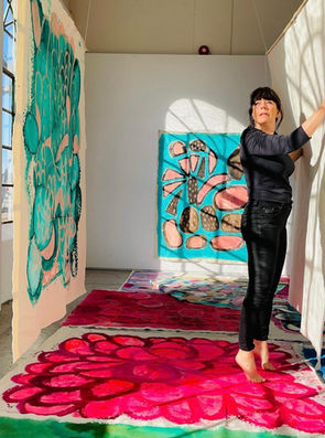 A: Smaller pieces can indeed feel more challenging. When I work large, it’s as if I see the piece from a bird's-eye view, even though I’m standing right in the middle of it and can’t see the whole. This scale allows me to immerse myself fully, moving with the work and feeling a freedom that’s harder to find in smaller formats. With big canvases, there are physical challenges—like reaching, stepping back, and constantly adjusting my perspective. But that immersion gives me a sense of flow and spontaneity that brings the work to life in a unique way.